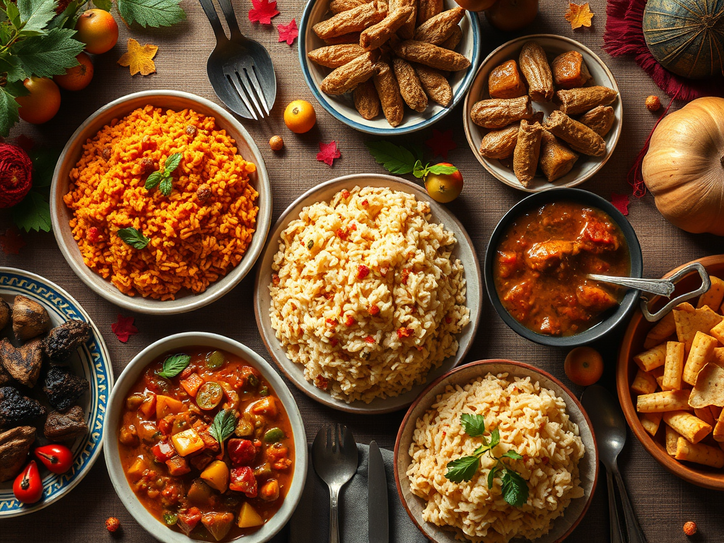 A Thanksgiving, de copieux repas sont partagés entre familles et amis. Au Libéria, le menu phare se compose de riz jollof épicé, de ragoût de feuilles de manioc et de sauce Palava alors qu’à la table des Americains on retrouve le plus souvent la fameuse dinde, la farce, le pain à la farine de maïs et la tarte à la citrouille.